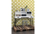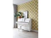 Vliesové, bílá tapety s hořčicovém geometrickým vzorem.