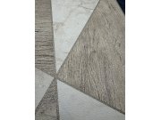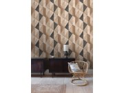 Geometrické vliesové tapety na zeď, odstíny hnědé, béžové a šedočerné. Motiv dřeva a mramoru, béžové metalické obrysy. Prostřih 0 nebo 38,8cm.