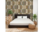 Geometrické vliesové tapety na zeď, odstíny hnědé, zelené a šedé, látkové textura.