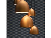 Jemně strukturované vliesové tapety s vinylovém povrchem, geometrické vzory v odstínech tmavě modré a terakota. Foto interiéru je pouze ilustrační - odlišné barvy.
