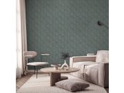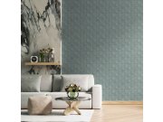 Modro-zelená vliesové tapety s vinylovém povrchem, drobný plastický geometrický vzorek. Foto interiéru je pouze ilustrační - odlišné barvy.