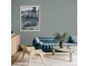 Modro-zelená vliesové tapety s vinylovém povrchem, plastické čáry tvoří efektní geometrický vzorek.