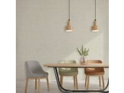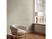 Luxusní vliesové tapety s vinylovém povrchem, geometrické vzory, látkové textura, béžové pololesk. Foto interiéru je pouze ilustrační - odlišné barvy.