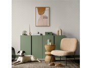 Luxusní vliesové tapety s vinylovém povrchem, geometrické vzory, látkové textura, béžové pololesk. Foto interiéru je pouze ilustrační - odlišné barvy.