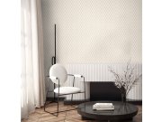 Luxusní vliesové tapety s vinylovém povrchem, geometrické vzory, látkové textura, krémové pololesk. Foto interiéru je pouze ilustrační - odlišné barvy.