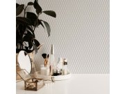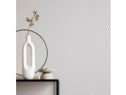 Luxusní vliesové tapety s vinylovém povrchem, efektní geometrický retro vzor v odstínech bílé, šedé a stříbrné. Foto interiéru je pouze ilustrační - odlišné barvy.