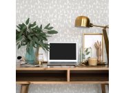 Luxusní geometrické vliesové tapety s vinylovém povrchem, efektní střídání plastických textur, barva slonové kosti a světle šedá. Foto interiéru je pouze ilustrační - odlišné barvy.