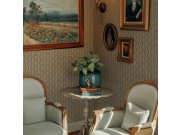 Luxusní vliesové tapety s vinylovém povrchem, drobná plastické kolečka tvoří efektní šupinové vzorek, barva hnědá s jemným zlatým pololeskem. Foto interiéru je pouze ilustrační - odlišné barvy.
