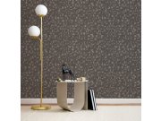 Pololesklá šedo-stříbrná jemně plastické vliesové tapety s vinylovém povrchem, geometrický vzor, místy stříbrné třpytky. V reálu světlejší, doporučujeme vyžádat si vzorek. Foto interiéru je pouze ilustrační - odlišné barvy.