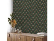Vliesové tapety s vinylovém povrchem, cik cak vzor v odstínech modré, zelené, hnědé a hnědo-zlaté. Co vás zaujme: efektní textury, propracované detaily. Design: grafický, moderní. Úroveň tapetovéní: začátečník. Země původu: Turecko.
