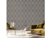 Luxusní strukturované vliesové tapety s vinylovém povrchem - geometrické vzory - šedo-stříbrné arkády. Foto interiéru je pouze ilustrační - odlišné barvy. 3 díly 1x3m.