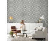 Luxusní strukturované vliesové tapety s vinylovém povrchem - geometrické vzory - šedo-stříbrné arkády. Foto interiéru je pouze ilustrační - odlišné barvy. 3 díly 1x3m.