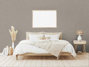 Jemně strukturované vliesové tapety na zeď, odstíny hnědé, jemné zlaté linie; vzor Chevron / rybí kost. Foto interiéru je pouze ilustrační - odlišné barvy.