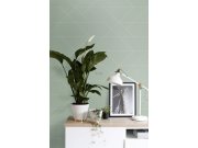 Zelená vliesové tapety s vinylovém povrchem, plastické čáry tvoří efektní vzorek. Foto interiéru je pouze ilustrační - odlišné barvy.