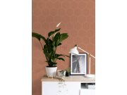 Bronzové vliesové tapety s vinylovém povrchem, jemná textura, netradiční vzor s hexagony. Foto interiéru je pouze ilustrační - odlišné barvy.