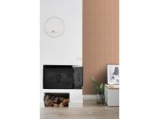 Hnědá /terrakota geometrické vliesové tapety s vinylovém povrchem, imitace dřevěného obkladu. Foto interiéru je pouze ilustrační - odlišné barvy.