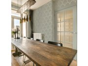 Metalické zeleno-hnědá vliesové tapety s vinylovém povrchem, jemná textura, netradiční vzor s hexagony. Foto interiéru je pouze ilustrační - odlišné barvy.