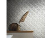 Luxusní, výrazně plastické, geometrické vliesové tapety s vinylovém povrchem, odstíny šedo-béžové s kovovém leskem. Foto interiéru je pouze ilustrační - odlišné barvy.