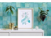 Vliesové tapety s vinylovém povrchem, dekor zelono-tyrkysovéch dlaždic, jemná textura. Velikost dlaždic cca 10,5x10,5cm.