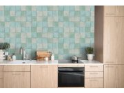 Vliesové tapety s vinylovém povrchem, dekor zelono-tyrkysovéch dlaždic, jemná textura. Velikost dlaždic cca 10,5x10,5cm.