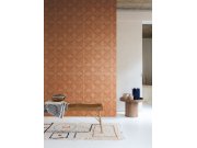 Terakotové vliesové tapety na zeď, geometrický vzorek v retro stylu - efektní střídání pololesku a matu.