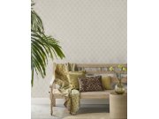Pololesklá béžové jemně plastické vliesové tapety s vinylovém povrchem, geometrcický vzor, místy zlaté třpytky.