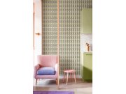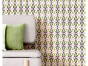 Luxusní vliesové tapety s vinylovém povrchem, grafický vzor v odstínech zelené, fialové, růžové, béžové a okrové, jemná textura. Co u vás zaujme: kvalita, stylové vzhled. Design: grafický. Úroveň tapetovéní: pro začátečníky. Země původu: Itálie.