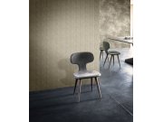 Geometrické vliesové tapety s vinylovém povrchem - střídání jemného pololesku a matu, hladkých a strukturovaných ploch, odstíny béžové, hnědé a zelené. Foto interiéru je pouze ilustrační.