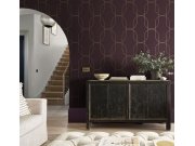 Vliesové tapety na zeď, matná, jemně vláknitá textura, barva fialové / švestkové, pololesklé zlaté linie. Co vás zaujme: vyrobeno s ohledem na udržitelnost a ekologii. Design: grafický. Úroveň tapetovéní: pro začátečníky. Země původu: Velká Británie.