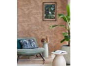 Vliesové tapety na zeď, motiv tropických listů, proužkové textura, odstíny hnědé, nádech starorůžové.