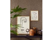 Vliesové tapety s vinylovém povrchem, imitace hrubší tkaniny, melanž v odstínech hnědé a béžové, místy zelené. Foto interiéru je pouze ilustrační - odlišné barvy.
