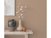 Luxusní vliesové tapety s vinylovém povrchem, hnědý pololesk, plastické hrubší látkové texura.