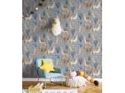 Hnědá vliesové tapety na zeď, motivy lam a kaktusů. Foto interiéru je pouze ilustrační - odlišné barvy.