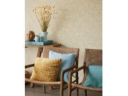 Béžové vliesové tapety s vinylovém povrchem, hnědé pololesklé motivy květin, imitace hrubé rustikální textilie. Foto interiéru je pouze ilustrační - odlišné barvy.
