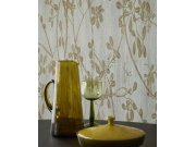 Luxusní plastické vliesové tapety s vinylovém povrchem, motivy větviček a listů v odstínech hnědé a metalické krémové.
