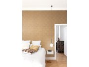 Luxusní vliesové tapety s vinylovém povrchem, hnědo-zlatý pololesk, plastické látkové texura. Foto interiéru je pouze ilustrační - odlišné barvy.