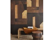 Luxusní vliesové tapety s vinylovém povrchem, efektní geometrický retro vzor v odstínech hnědé, béžové a zlaté.