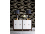 Luxusní vliesové tapety s vinylovém povrchem, hnědé pololesklé plastické metalické listy, zlaté obrysy.