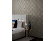 Luxusní strukturované vliesové tapety s vinylovém povrchem - geometrické vzory - hnědo-zlaté a šedé arkády. Foto interiéru je pouze ilustrační - odlišné barvy. 3 díly 1x3m.