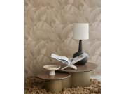 Krémové plastické vliesové tapety na zeď, motivy listů - efekt stříbřitého pololesku a matu. Foto interiéru je pouze ilustrační - odlišné barvy.