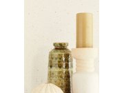 Jemně plastické krémové vliesové tapety na zeď, omítkové textura, drobné metalické zlato-béžové puntíky.