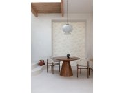 Luxusní krémové vliesové tapety s vinylovém povrchem, plastický vzor s perlovémi odlesky. Foto interiéru je pouze ilustrační - odlišné barvy.