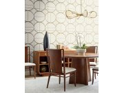 Krémové hladká vliesové tapety na zeď, plastické zlaté linie a kruhy.
