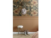 Černá vliesové tapety se secesním květinovém vzorem v odstínech zelené, béžové a hnědé.