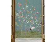 Hladká vliesové tapety na zeď, květinové vzor v odstínech zelené, modré, růžové a hnědé.