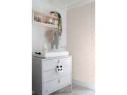 Hladká vliesové tapety na zeď, květinové vzor v odstínech béžové, šedo-béžové, růžové a bílé.