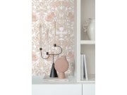 Hladká vliesové tapety na zeď, květinové vzor v odstínech béžové, šedo-béžové, růžové a bílé.