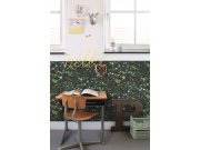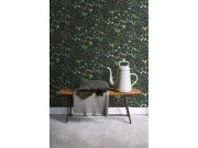 Černá vliesové tapety se secesním květinovém vzorem v odstínech zelené, béžové a hnědé.