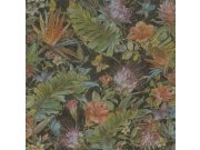 Luxusní květinové vliesové tapety s vinylovém povrchem v pestrých barvách s metalickými odlesky. Motiv tropických květin a motýlů. Hrubá struktura.