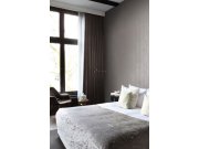 Plastické tapety s jemnou strukturou a s výrazným kovovém efektem v barvě měděné a šedomodré dodá interiéru luxus a styl.